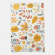 Cute Boho Autumn Fall Pattern Orange Teal Yellow Tea Towel