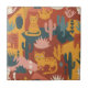 Cute Boho Desert Cats Cactus Succulent Pattern Ceramic Tile