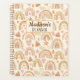 Personalised name and monogram planner with a pattern of watercolor painted modern boho rainbows in earthy neutral and terracotta tones.