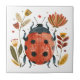 Cute Boho Red Ladybug Scandinavian Folk Art Ceramic Tile