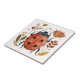 A beautiful boho style red and black ladybug is the feature on this colourful ceramic tile. The bee is surrounded with matching gold, red, and green flower and leaf designs.