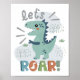 Cute boho t-rex dinosaur let's roar baby room nursery wall art decor.