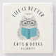 Cute Book Lover Cat Reading Book Custom Stone Coaster