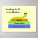 A great poster or print for the classroom, library or home. A cute green bookworm wearing reading glasses on a stack of colourful books.