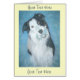 This customisable note card has a picture of a border collie named “Badger”on the front. Badger was a very special border collie dog, he was a rescue dog and he lived to be 16 years old. This faithful and loyal boy spent almost every moment with his “mum.” He was a working dog and she a gardener, they made the perfect pair, but sadly he passed away a few years ago. I painted this portrait of Badger before he passed on, he always carried his little blue teddy around with him so the teddy was very fitting to his portrait. The text on the front and inside this card can be personalised to suite all sendings.