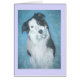 An blank greeting card that's suitable for lovers of dogs, endearing images or simply anything original and cute. This lovely card has a picture of “Badger” on the front. Badger was a very special border collie dog, he was a rescue dog and he lived to be 16 years old. This faithful and loyal boy spent almost every moment with his “mum.” He was a working dog and she was a gardener, they made the perfect pair, but sadly he passed away a few years ago. I painted this portrait of Badger before he passed on, he always carried his little blue teddy around with him so the teddy was very fitting to his portrait. I think Badger the collie dog looks great on this greeting card because he’s offering his favourite toy to let his mum know he loves her. The card can be sent as a Mothers day card or a Birthday card to mum, but as it's a blank card it's a suitable sending for anyone and any occassion. The original artwork for Badgers pet portrait is painted in soft pastel.