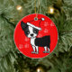 Cute Boston Terrier Cartoon Santa Hat Red Ceramic Tree Decoration