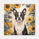 Cute Boston Terrier Yellow Sunflowers Magnet