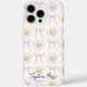 Add your name to this cute preppy iPhone case with pink bows and daisies pattern, in a feminine coquette style.