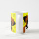 Dog mugs with vector art of a Boxer on yellow background with circles.