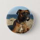 Boxer puppy dog resting on a beach for boxer dog lovers.