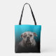 Cute Boxer Dog w Blue Black Gradient background Tote Bag