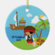 Our unique personalised & dated pirate christmas ornament features the cutest little pirate boy set on blue ocean water background with a pirate ship, palm tree & treasure chest! Personalise with your information and date and you're all set to go! Wonderful dated keepsake gift for your christmas tree and a great addition to you christmas ornament collection.
