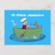 For nautical fun! This design features a boy rowing his boat on the ocean with a dog and sea gull with a happy fish saying hello! Drawn in cute cartoon illustration style.