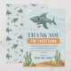 This cute and modern baby shower thank you card design features an under the sea illustration, with a matching blue shark pattern on the back. The thank you card can be personalised with the parent's (or child's) names. The perfect addition to your co-ed couples boys baby shower.