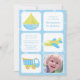 This boy's photo birthday party invitation has a cute boys travel theme. There are three different means of transportation represented: a sail boat, aeroplane, and a dump truck. You can easily customise the party information in the 3 different boxes with your own. In the bottom right box, you can add your own photograph. © The Crafty Clip