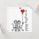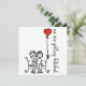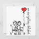Adorable doodles of a bride and groom on a whimsical bench with a heart-shaped balloon. This unique wedding invitation is perfect for any season.