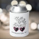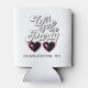 Cute can cooler for the bride-to-be at her bachelorette party featuring "Wife of the Party" in a white retro 70's style script and heart-shaped hot pink sunglasses. Personalise the party location or the name of the bride in simple modern typography. Matching "Life of the Party" can coolers are available for the guests (message us for the link).