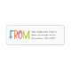 Merry and bright, this return address label is the perfect finishing touch for your Christmas cards. Designed to coordinate with the Lea Delaveris Design Fa La La and Ho Ho Ho collection, this simple return address sticker features a vivid teal, orange, pink and lime green "from" along with your personalised text.