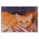 Be in style with this funny, cute bright orange tabby cat lover glass cutting board. Digitally painted photograph of bright orange cat with orange, brown eyes. Mischievous looking cat laying down with copper, ginger colours. Image copyright Marg Seregelyi Photography.