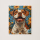 Cute Brown and White Dog and Flowers Jigsaw Puzzle
