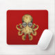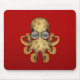 Cute Brown Baby Octopus Wearing Glasses on Red Mouse Pad