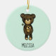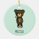 Cute Brown Bear Holding a Yellow Flower Custom Ceramic Ornament