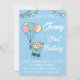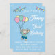 Cute Brown Bear Hot Air Balloon Boy Birthday Invitation