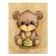 Adorable brown bear sitting with his paws in a pot of yellow sweet honey. The original artwork is in watercolor paint and coloured pencils.