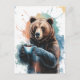 Cute Brown Bear With Coffee Watercolor Postcard