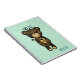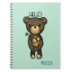 A spiral notebook with a simple illustration of a cartoon brown bear holding a yellow daisy. Hello written above his head. Personalise with a name.