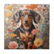 Cute Brown Dachshund And Cosmos Flowers Ceramic Tile