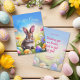 Celebrate the joy of Easter with this beautifully designed card, featuring a charming watercolor painting of a cute brown baby bunny in a field of spring flowers and colourful Easter eggs. The text “Happy Easter” is customisable, allowing you to add a personal touch. On the back, a soft watercolor image of spring flowers and Easter eggs adds a delicate touch, with space for your own special message. A perfect way to share Easter blessings with loved ones!