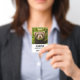 Name badge with an adorable photograph featuring a small brown ferret standing up in some long grass. Cute as can be!