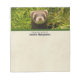wA notepad ith an adorable photograph featuring a small brown ferret standing up in some long grass. Cute as can be! Light brown background. Personalise with your name.