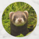 Table confetti with an adorable photograph featuring a small brown ferret standing up in some long grass. Cute as can be!