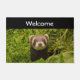 Welcome doormat with an adorable photograph featuring a small brown ferret standing up in some long grass. Cute as can be!