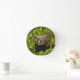A clock with an adorable photograph featuring a small brown ferret standing up in some long grass. Cute as can be!