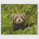 Wrapping paper with an adorable photograph featuring a small brown ferret standing up in some long grass. Cute as can be!