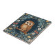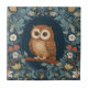 Cute Brown Owl Dark Blue Colourful Floral Flowers Ceramic Tile
