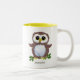 Cute Brown Owl, Laurel Leaves & Calligraphy Two-Tone Coffee Mug