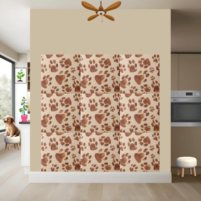 This tile features a seamless pattern of brown paw prints on a light beige background. It's perfect for pet lovers or anyone looking to add a touch of animal-inspired design to their home decor. The design is suitable for various applications, from backsplashes to accent tiles, and can be easily incorporated into different interior styles.
