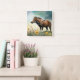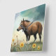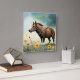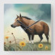 Cute brown pony in the floral field square wall clock