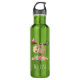 Personalised water bottle with an illustration with a cute brown sloth hanging upside down. This funny little guy is holding onto a branch which has a little pink bird on