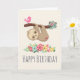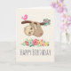 Cute Brown Sloth Hanging Upside down Birthday Card