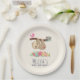 Birthday paper plates with an illustration of a cute brown sloth hanging upside down. This funny little guy is holding onto a branch which has a little pink bird on