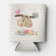 Can cooler with an illustration of a cute brown sloth hanging upside down. This funny little guy is holding onto a branch which has a little pink bird on