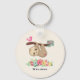 Personalised keychain with an illustration of a cute brown sloth hanging upside down. This funny little guy is holding onto a branch which has a little pink bird on