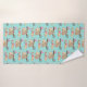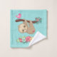 Towel set with a repeating pattern. Designed with an illustration of a cute brown sloth hanging upside down. This funny little guy is holding onto a branch which has a little pink bird on one side of the branch and a doodle-style rose bouquet on the other side. Below them is an arrangement of colourful hand-drawn flowers. This adorable sloth also has pink rosy cheeks and 3 cute little hearts on his butt. Light aqua coloured background.