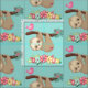 one side of the branch and a doodle-style rose bouquet on the other side. Below them is an arrangement of colourful hand-drawn flowers. This adorable sloth also has pink rosy cheeks and 3 cute little hearts on his butt. Light aqua background colour. Would make adorable pyjamas or other comfy clothes for lazing around.
